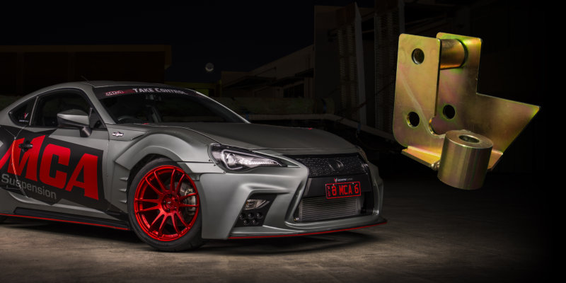 The Unique and Patented MCA Suspension 86 Traction Mod is a bolt-on bracket that relocates a suspension arm pickup point to help flatten out the arm angle and reduce anti-squat.